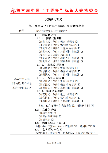 ![]() 伍 报名方式 投稿产品均采取‘网上报名文档资料’+用物流输送实物产品形式。 即投稿产品,需先在网上提交文档资料,并得到确认后方可提交实物产品。每件实物产品打包好,随附网上报名,文档资料原件,快递/运输至大赛指定地点(不设提货服务);大赛不收取任何费用。 步骤一、 网上报名:发送网上报名文档资料至指定邮箱报名。 邮件标题:公司名称/联系人姓名+产品类别、名称;产品类别、名称需与《报名表》一致; 邮件附件内容:①《报名表》扫描件/照片 ②产品外观图纸/照片一套(参照六视图规范)③产品生产图纸; 步骤二、 实物提交:自行邮寄产品至指定地址。 指定收件地点:深标协(惠州.惠阳)标识生产基地——第四届中国标识文化节分会场; 收件地址:广东省惠州市惠阳区银峰一路365号 收件人:姚小姐18820216798