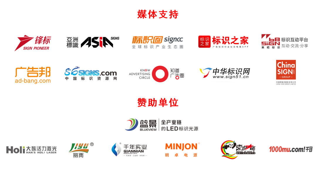 第四届标识文化节活动一览 活动壹 第三届中国“工匠杯”标识大赛 中国“工匠杯”标识大赛至今已举办两届。是标识文化节的重要活动和象征之一。 2022年度中国“工匠杯”标识大赛共分为标识设计大赛、标识产品大赛、标识工程大赛三大赛事内容,以“匠心力量 共享成长”为主题;以弘扬“匠心”精神,集中展示精品标识为目的;旨在提升标识创意设计、标识生产制造、标识工程施工水平,推动行业内各企业间的交流与互动,汇聚资源,提升行业整体水平! 本活动将由大族活力激光全程鼎力支持!目前已经进入征稿阶段,欢迎广大标识人踊跃报名! 活动贰 2022中国标识展 2021年05月-2022年05月前,工匠杯、技能大赛已进入分赛区投稿评选阶段。届时三项大赛的优秀作品将会在各项标识展上与大家见面! 标识展共分为标识大赛优秀作品、产品展;技能大赛作品展;全产业链标识生态新兴发展业态展;新产品、新技术、新工艺展;智慧标识体验区等多个展览板块。 活动叁 中国标识文化节开幕仪式 以引领行业发展趋势,推动行业新技术、新工艺、新产品应用的第四届中国标识文化节,将会由相关政府领导、行业专家、代表协会等1500余人共同启幕。 开幕仪式将由丽雨光电全程赞助! 活动肆 未来趋势发展论坛 领域细分化、产品智慧化、思维活跃化,标识行业转型之路面临着更大的商机与挑战,利用新技术,如何在大数据时代,结合行业特点,打造核心竞争力是标企的重要难关。文化节•高峰论坛请来政府相关领导、高科技领域独角兽企业对国内经济形势及未来发展趋势进行分享和互动,共同探讨大趋势对标识行业未来的影响与变革。 本活动将由丽雨光电全程鼎力支持! 活动伍 全国标识职业技能大赛 文化节的重要活动之一——标识职业技能大赛充分发挥业技能竞赛促进技能人才培养、推动职业技能培训和弘扬工匠精神的重要作用,旨在进一步推动行业高质量、高水平发展。全国标识匠人同台竞技,共同比拼行业职业技能,推动标识行业新职业技能进步。 本活动将由千年化工全程鼎力支持! 活动陆 城市空间设计跨界创新 研讨会 城市设计作为呈现与提升城市空间质感的重要载体,所关注的问题已超越空间本身,数字驱动、视觉设计、标识导视、公共艺术对话等新型设计方法为城市设计更新提供了新的发展机遇。 研讨会特邀深圳大学建筑与城市规划学院加盟,邀请空间设计、建筑领域、公共艺术等专家学者,旨在通过分享各自在学术、研究、实践方面的最新思考,共同探讨城市设计研究中的新方法、新角度、新事件! 本活动将由丽雨光电全程鼎力支持! 活动柒 智慧城市领袖峰会 新一轮科技革命和产业变革席卷全球,我国标识产业正在步入跨界融合、技术创新和数字化应用的新发展时期,为了更好的推进行业的“智慧化”落地,推动标识产业链与新一代信息技术链融合发展,领袖峰会将邀请部门领导、技术领域学研界专家、业界企业领袖,以会议、会展、论坛的方式,针对“智慧标识”技术标准、行业应用、产业升级等各方面,与来自全国的行业同仁共话前沿动态与思潮。 本活动将由丽雨光电全程鼎力支持! 活动捌 工匠杯标识大赛金奖作品 分享会 起始于2016年的【工匠杯】标识大赛,本届新增产品大赛、工程大赛。作为各省、市、自治区共同联合主办的全国唯一标识赛事,具有行业权威性及国际影响力。金奖获得者分享作品概念、作品特点、作品优势,供行业同仁学习和交流,促进行业发展。 本活动将由大族活力激光全程鼎力支持! 活动玖 四新技术应用交流会 近年来标识工程及广告工程的建设,从注重“性价比”逐步向“创新性”进行转变,新技术、新工艺、新材料、新产品层出不穷,文化节本着“营造优良营商环境、搭建产需对接平台”的目的,举办四新技术应用交流会,邀请行业内创新型企业,分享四新技术应用,引领行业科技创新,充分发挥行业技术服务优势,搭建行业宣传推广的平台,护航标识产业经济发展。 本活动将由丽雨光电全程鼎力支持! 活动十 第四届中国标识文化节 颁奖盛典 第四届标识文化节高潮盛典,明卓电源•颁奖之夜将隆重表彰各类比赛优胜企业、先进组织单位及行业功勋,巅峰荣耀,花落谁家,让我们一起举杯,共促发展,携手前进,共襄盛世! 本活动将由明卓电源全程鼎力支持! 活动拾壹 大亚湾文旅游学 五月雨晴梅子肥,杏花吹尽燕飞飞。皋月时节,共聚鹏城,四海来客,大宴嘉宾,在高速的头脑风暴后,享受惬意的五月风光。此次文化节将会组织参观大湾区标识企业,共计4条线路,涵盖设计线路、生产线路、工程线路、旅行线路,可自行选择,尽情享受大亚湾的美丽风景。 ![]() ![]() ![]() ![]() ![]() ![]()